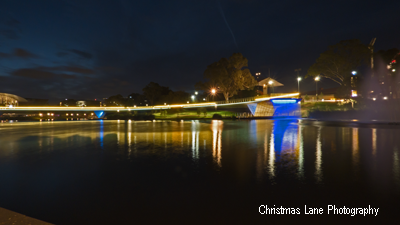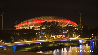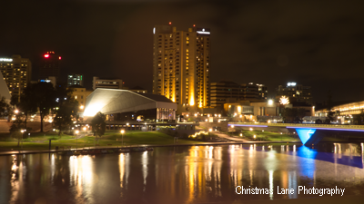 Adelaide’s Riverbank has an impressive night time lights display.