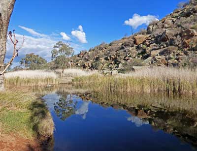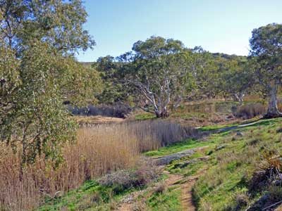 Reedy Creek is usually only a series of water holes but after heavy rain falls it is